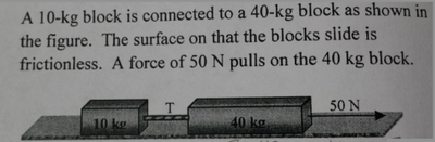 What is the magnitude of the tension T in the rope that connects the two blocks?