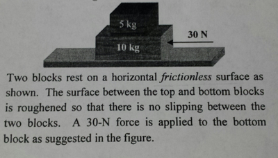What is the magnitude of the force of static friction between the top and bottom blocks?