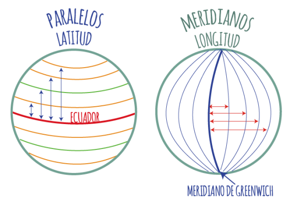 ¿Cuál es la relación entre meridiano y paralelo?