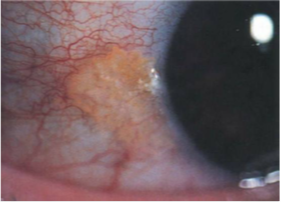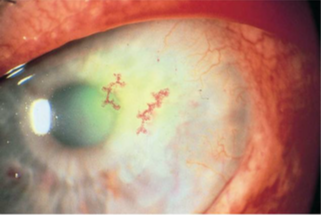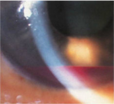 Alcanza la cornea, sobrepasa la unión esclerocorneal.
