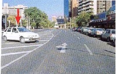 De acuerdo a las circunstancias que se aprecian en la fotografía, ¿sería correcto que el automóvil indicado con la flecha continuara derecho ?