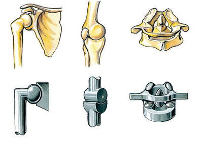 ( Scharniergelenke, Drehgelenke, Kugelgelenke ) (z. B. Kniegelenk) und ( Drehgelenke, Kugelgelenke, Scharniergelenke ) (z. B. zwischen dem ersten und zweiten Halswirbel) erlauben Bewegungen in nur einer Ebene, sie sind um eine Achse drehbar.