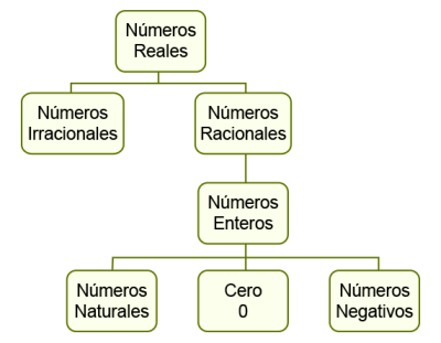 Irracionales,Racionales,Enteros,Naturales,Cero,Enteros Negativos