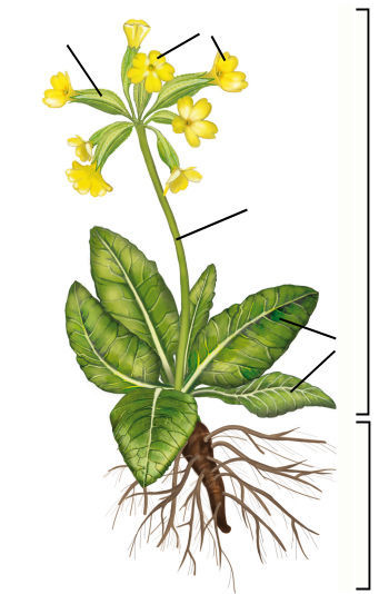 Alle Blütenpflanzen haben einen gemeinsamen Bauplan. Die Organe einer Pflanze bilden den Organismus der Pflanze. Benenne die Organe der Pflanze mit ihrem richtigen Namen.