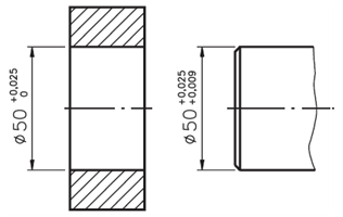 ( ) diâmetro do eixo: 50,016 mm; diâmetro do furo: 50,008 mm.