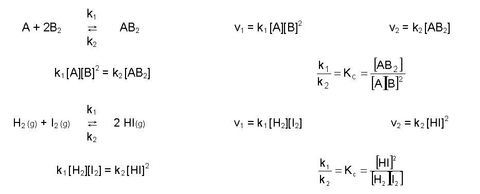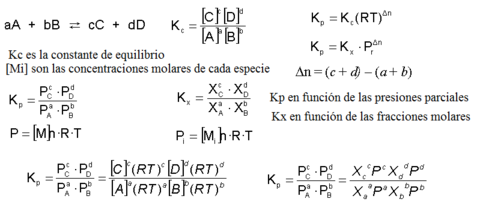 | Ley de acción de masas (Guldberg y Waage): Constantes de equilibrio | |