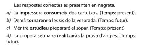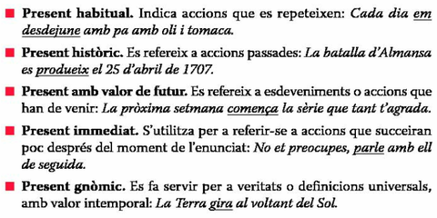 | Quins són els valors del present d'indicatiu? Posa'n exemples |