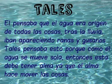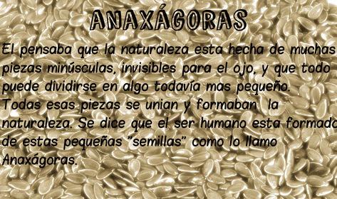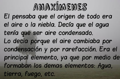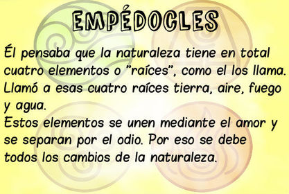 | Anaximandro: El pensaba que nuestro mundo es uno de muchos mundos que nacen y perecen de algo que el llamo "lo indefinido". Este "indefinido" es inmortal e indestructible etc. pero que de él se engendran todas las cosas. | |