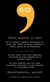 | Esa pequeña pausa creada por la coma, puede cambiar el significado de una oración por completo, de hecho podría salvar vidas. | |