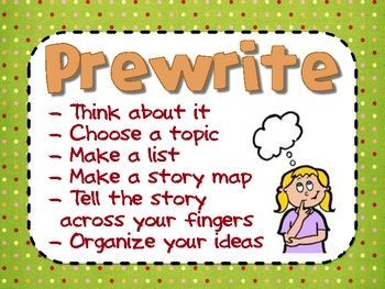 | Step #1 PREWRITE | PREWRITE This is the planning phase of the writing process, when students brainstorm, research, gather and outline ideas, often using diagrams for mapping out their thoughts |