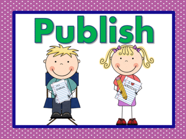 | Step #5 PUBLISH | PUBLISH In this last step of the writing process, the final writing is shared with the group. Sharing can be accomplished in a variety of ways, and with the help of computers. |
