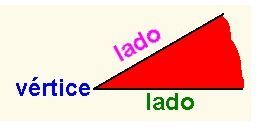 | Los lados del ángulo son las semirrectas que lo forman. El vértice del ángulo es el punto común que es origen de los lados. | |