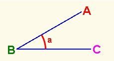 | Los ángulos pueden nombrarse de tres formas distintas: Por las letras mayúsculas correspondientes a las semirrectas, colocando en medio la letra vértice: ABC ó CBA Por una letra o número colocado en la abertura a Por la letra del vértice B | Un ángulo completo es el que está delimitado por dos semirrectas que coinciden. |