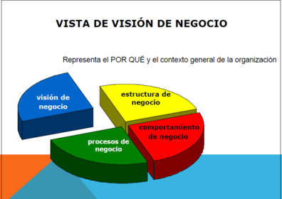 | ○ Actúa como guía para el modelado de las otras vistas del negocio. ○ Imagen de “hacia donde” va el negocio ○ Herramienta de motivación entre involucrados. | Expertos sobre la Vista ○Presidentes ○Directorios ○Gerencia |
