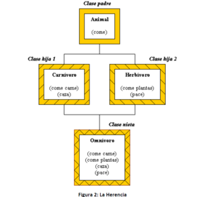 | ¿Qué es la Herencia? La herencia no está limitada simplemente a padre-hija(s), la jerarquía puede ser todo lo profunda que sea necesario, hablando en términos de nietas, biznietas, etc. | |