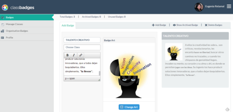 | Da nombre a tu insignia. Describe por qué se otorga. Busca la mejor imagen para ella. | |