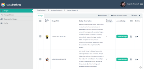 | Finalmente, un panorama de insignias otorgadas por curso. Avanti!! :) @eugeniarc |