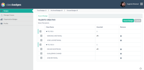 | Aquí puedes ver la cantidad de estudiantes de cada curso y empezar a premiar sus comportamientos. | |