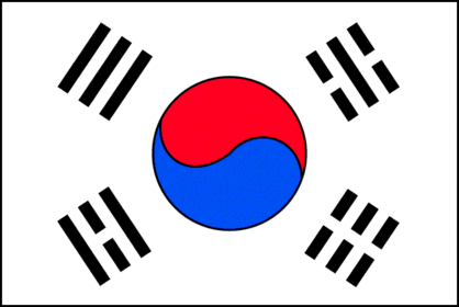 | ¿La bandera de Korea del Sur es de color verde y morado? | Tiene blanco, negro, azul y rojo. |
