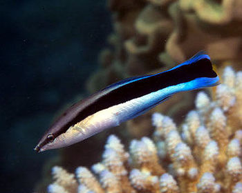 | PEIXE LIMPADOR Labroides dimidiatus | PEIXE CLIENTE Hemigymnus melapterus |