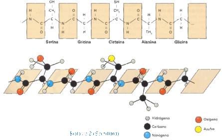 | QUÉ ES UNA PROTEÍNA ? | Son macromoléculas orgánicas, constituidas básicamente por carbono (C), hidrógeno (H), oxígeno (O) y nitrógeno (N); aunque pueden contener también azufre (S) y fósforo (P) y, en menor proporción, hierro (Fe), cobre (Cu), magnesio (Mg), yodo (I), etc... Estos elementos químicos se agrupan para formar unidades estructurales llamados AMINOÁCIDOS. |