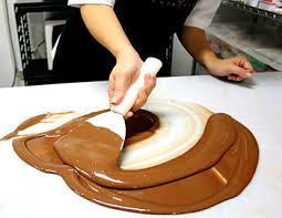 | TEMPERADO EN MÁRMOL | La cobertura derretida se vacía sobre u mármol, usando una espátula de metal y un espátula de mesa, el chocolate se extiende moviendo constantemente para ir bajando la temperatura hasta que llegue a 32°C. |