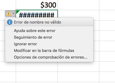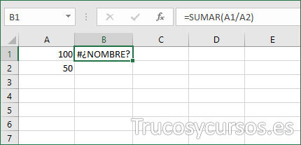 | #¿nombre? | ocurre cuando introducimos un nombre de función inexistente. También, cuando no cerramos una cadena de caracteres entre comillas dobles o cuando omitimos los dos puntos (:) en referencia de rango |