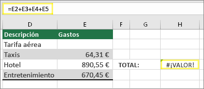 | #¡VALOR! | se presenta cuando introducimos una fórmula matemática que hace referencia a un dato de tipo texto |