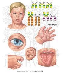 | CARACTERÍSTICAS -Disminución del tono muscular -Nariz achatada -Un solo pliegue en las palmas de las manos -Manos cortas y anchas entre otras | |