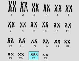 | El síndrome de Down es un trastorno genético causado por la presencia de una copia extra del cromosoma 21 (o una parte del mismo), en vez de los dos habituales, por ello se denomina también trisomía del par 21. | |