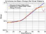 | Epidemiología Tabla de riesgo por edad materna La incidencia global del síndrome de Down se aproxima a uno de cada 700 nacimientos (15/10 000), pero el riesgo varía con la edad de la madre. La incidencia en madres de 15-29 años es de 1 por cada 1500 nacidos vivos; en madres de 30-34 años es de 1 por cada 800; en madres de 35-39 años es de 1 por cada 385; en madres de 40-44 años es de 1 por cada 106; en madres de 45 años es de 1 por cada 30.14 | |