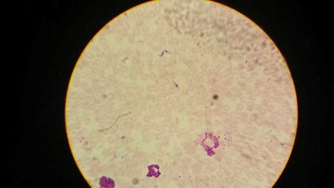 | 1.- Trypanosoma congolense 2.- Tripomastigote 3.- Núcleo, Membrana ondulante, Quinetoplasto | |