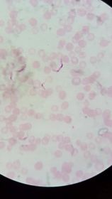 | 1.- Trypanosoma cruzi (crithidial) 2.- tripomastigote 3.- nucleo, membrana ondulante, quinetoplasto | |
