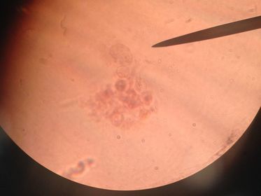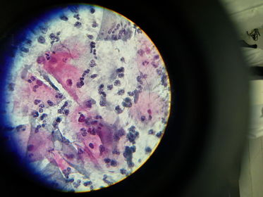 | 1.- Trichomonas sp 2.- Trofozoito 3.- Núcleo, Membrana ondulante, Cuerpo parabasal | |