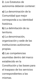 | Artículo 147.2 ¿Qué deberán contener los Estatutos de Autonomía? | |