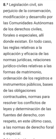 | Disposición Adicional Segunda | La declaración de mayoría de edad contenida en el artículo 12 de esta Constitución no perjudica las situaciones amparadas por los derechos forales en el ámbito del Derecho Privado. |