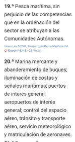 | Artículo 148.1 ¿Cuáles competencias podrán asumir las Comunidades Autónomas? | 11. La pesca en aguas interiores, el marisqueo y la acuicultura, la caza y la pesca fluvial. 12. Ferias interiores. |