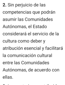 | Artículo 149.2 Sin perjuicio de las competencias de las Comunidades Autónomas, ¿Cómo considerará el Estado el servicio de la cultura? | |