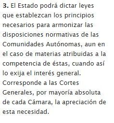 | Artículo 150.3 ¿Quién y cuándo podrá dictar leyes de armonización? ¿Con cuál mayoría? ¿Con cuál objetivo? | |