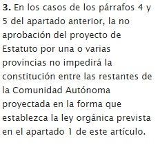 | Artículo 151.3 En los casos de los párrafos 4 y 5 del apartado anterior, ¿Qué no impedirá la no aprobación del proyecto de Estatuto por una o varias provincias? | |