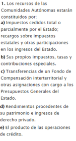 | Artículo 157.1 Los recursos de las Comunidades Autónomas, ¿Por cuáles están constituidos? | |