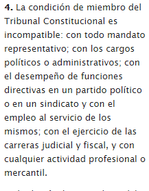 | Artículo 159.4 ¿Cuáles son las incompatibilidades de los miembros del Tribunal Constitucional? | |