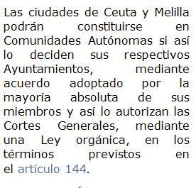 | Artículo 145.1 ¿Se podrán admitir en algún caso la federación de Comunidades Autónomas? | 1. En ningún caso se admitirá la federación de Comunidades Autónomas. |