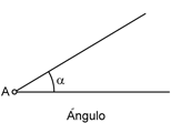 | Ángulo | Se define como la porción de plano comprendida entre dos semirectas que tienen un mismo origen. Se nombran mediante una letra mayúscula, o una letra minúscula del alfabeto griego (ángulo A o ángulo alfa) |