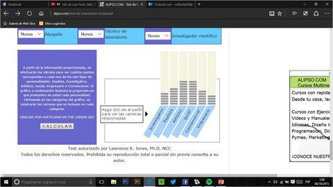 | ANÁLISIS DE RESULTADOS En el test realizado los resultados se guiaron por el campo investigativo, en el cual me quiero destacar en mi vida laboral. | |