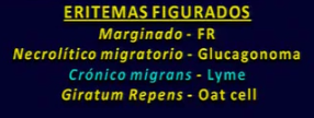 | Tto nocardiosis pulmonar (filamentos arrosariados grampositivos): trimetoprim-sulfametoxazol | Micosis Fungoide: zonas de placas eritematosas, algunas con descamación y picor, posteriormente placas infiltradas eritematosas y lesiones tumorales grandes ulceradas |