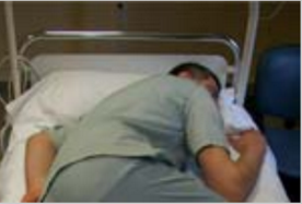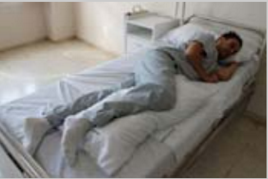 | Decúbito lateral | Paciente tumbado de lado y con la pierna superior flexionada en ángulo recto. -Almohadas -Entremetidas Estancia en cama. Para distintos tratamientos. Cambios posturales. |