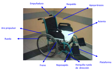 | Silla Para entrar en el ascensor se hará de espaldas al mismo, por lo que nosotros seremos los primeros en entrar. Por el contrario para salir saldremos de frente a la puerta. En las rampas, para subir lo haremos de frente y para bajar de espaldas. Los bordillos, para subir se hará de espaldas, apoyando la rueda grande en el bordillo, se inclinará la silla hacia nosotros y se tirará hacia arriba. Para bajar los bordillos, se hará de espaldas sujetando el peso de la silla. | |