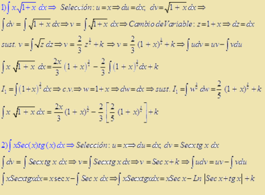 | Ejemplos de Integración por Partes | |