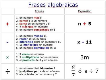 | EXPRESIÓN ALGEBRAICA | EXPRESIÓN ALGEBRAICA : Es un conjunto de números y letras relacionados mediante sumas, restas, multiplicaciones, divisiones y potencias. |
